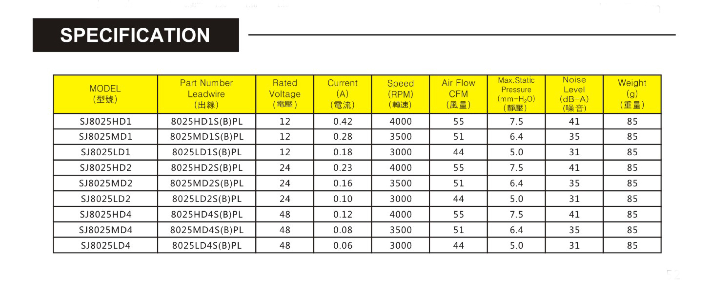 臺灣三巨SJ8025HD2-DC軸流風扇
